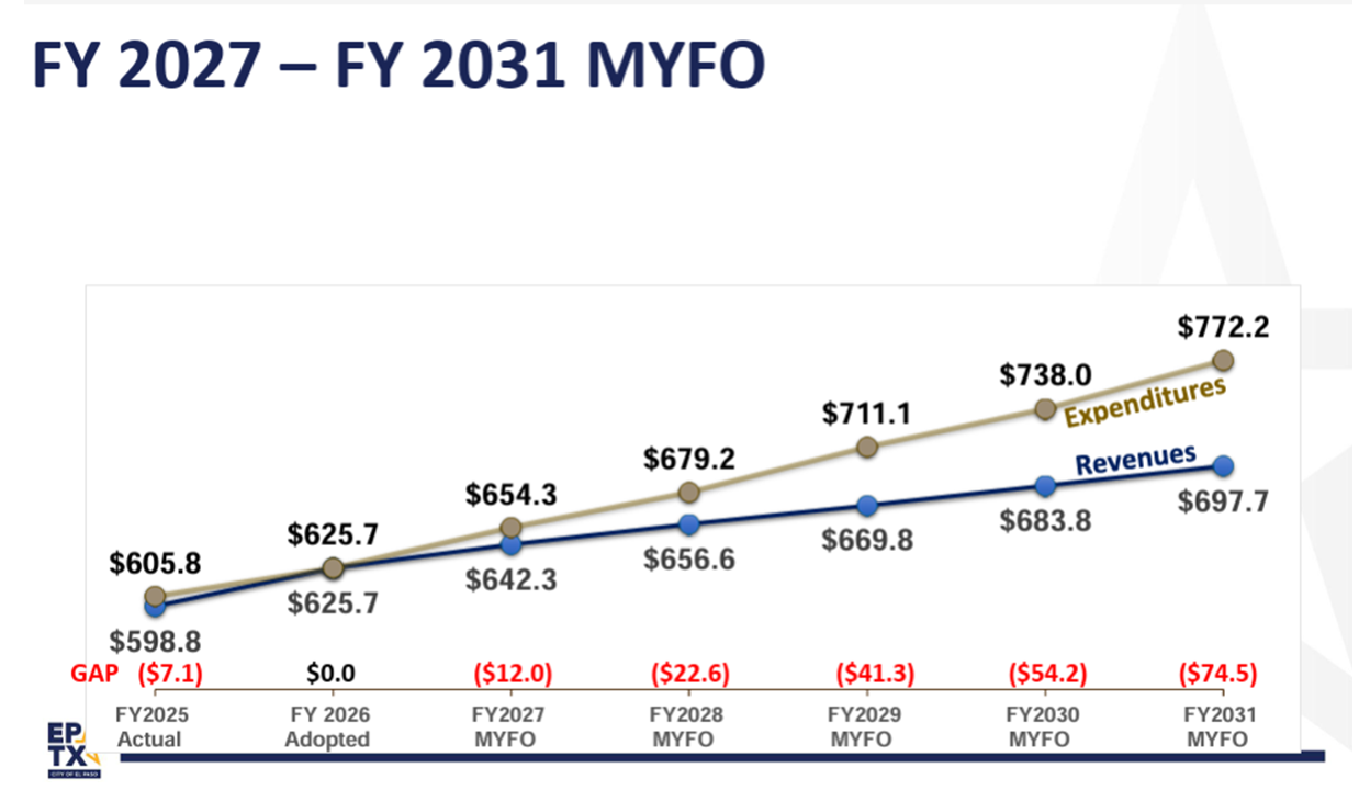 Robert Cortinas is the CFO of the City of El Paso and at the Council Meeting this coming Tuesday he will report his budget projections for FY 2027-2031. Based upon…