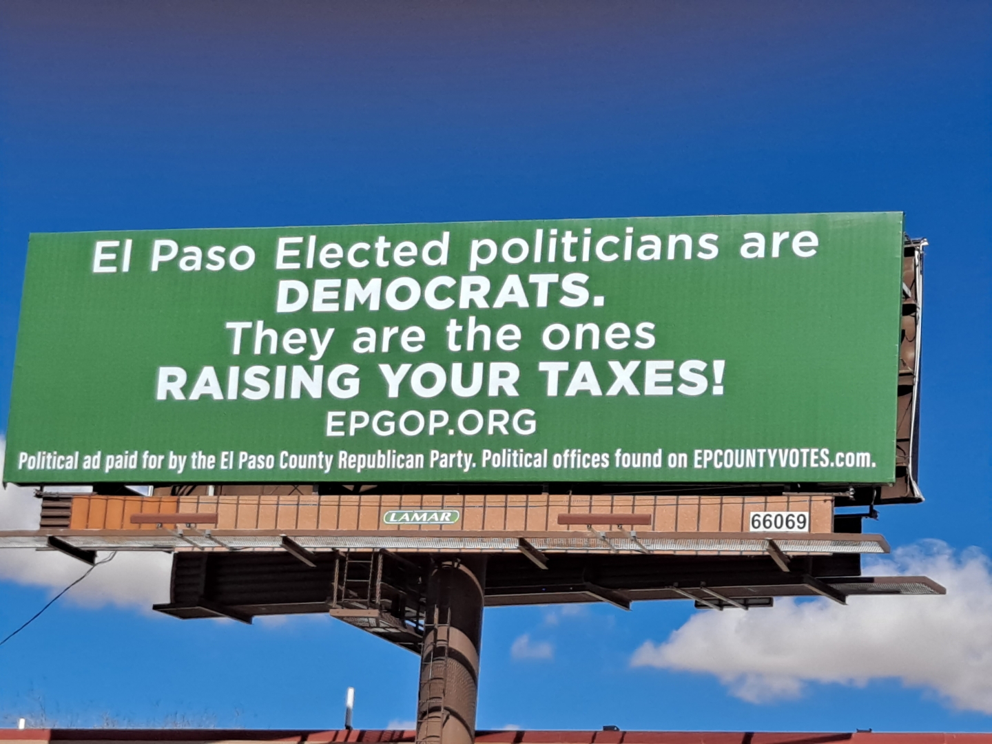 We have to hand it to the local Republicans. This is one hell of a billboard they put up at Lee Trevino and Pellicano!
